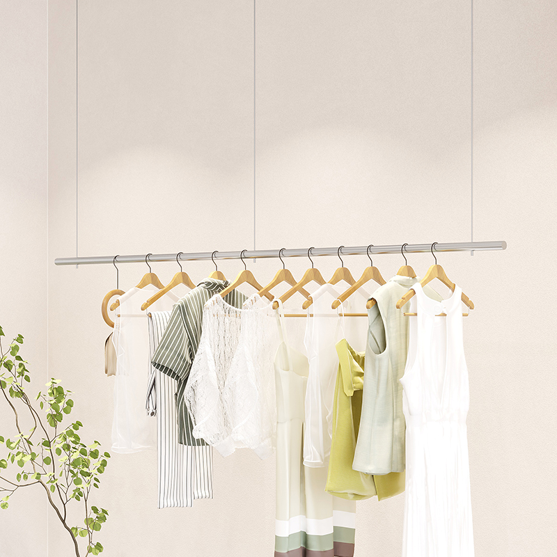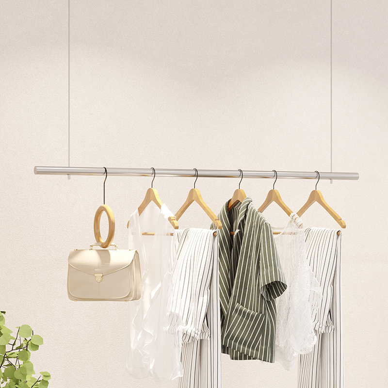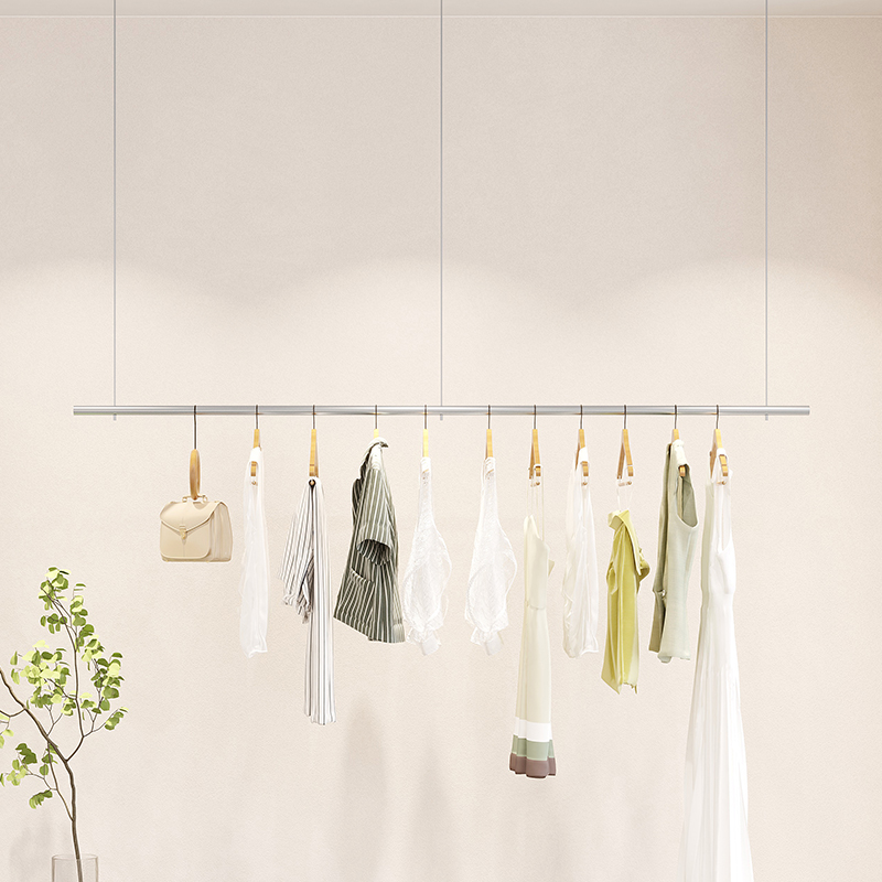 Clothing store display stand stainless steel hanger lift clothes rail silver wall women's clothing store steel wire adjustment display stand
