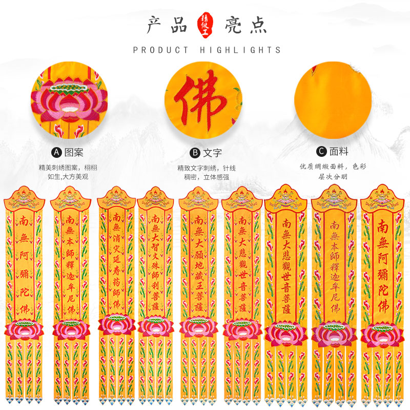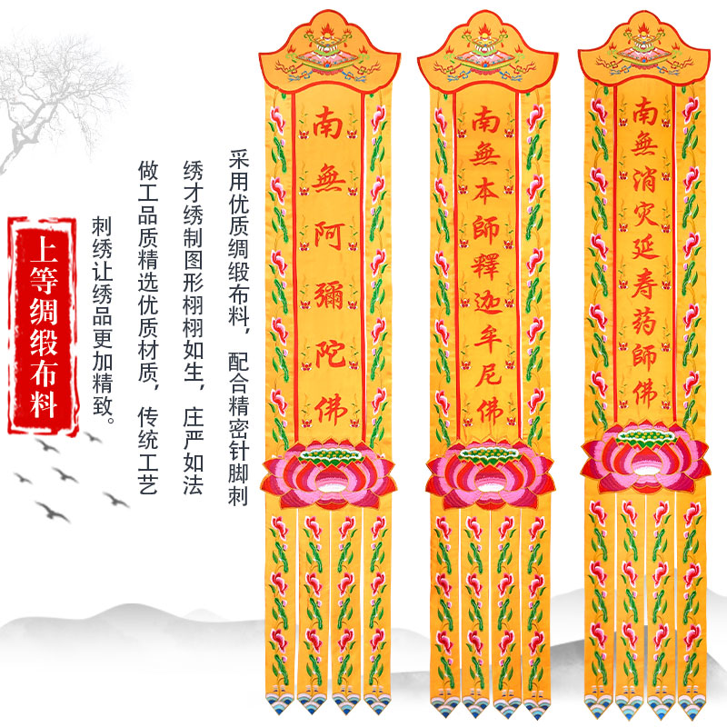 Buddha hall hanging banner Buddha embroidery long banner Buddha hall embroidery embroidery hanging banner tide embroidery banner custom building banner Buddha banner vertical hanging banner