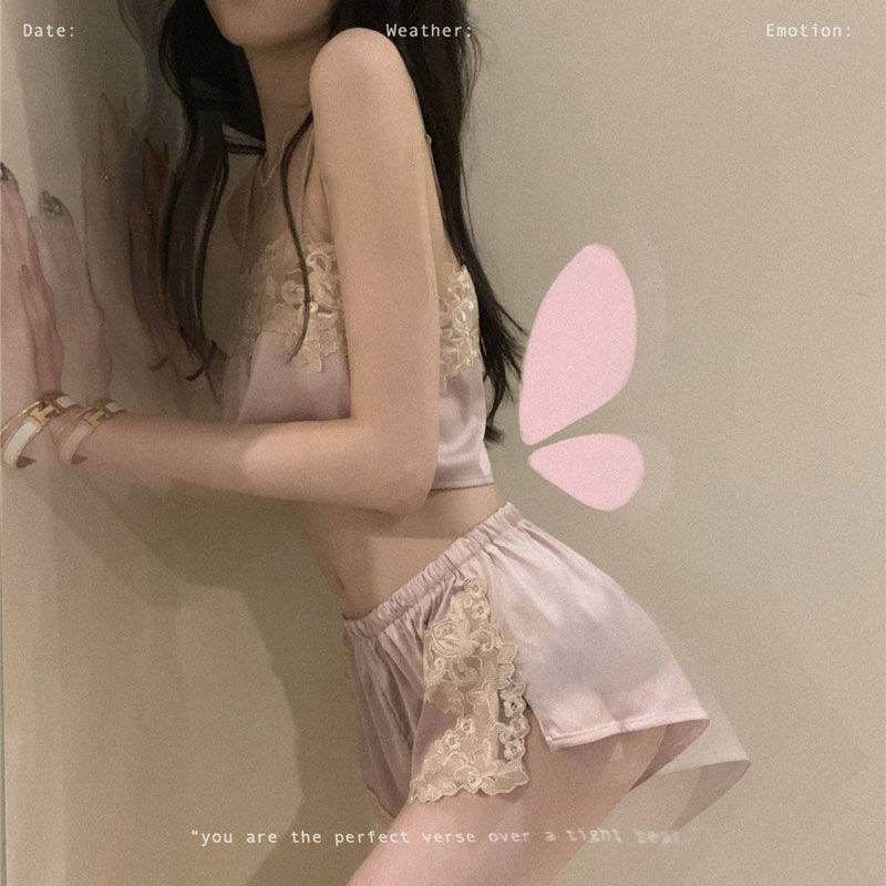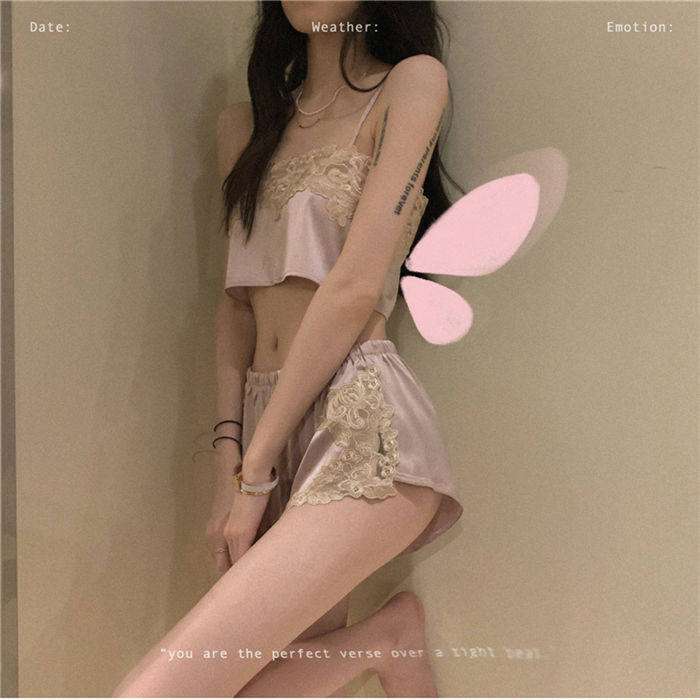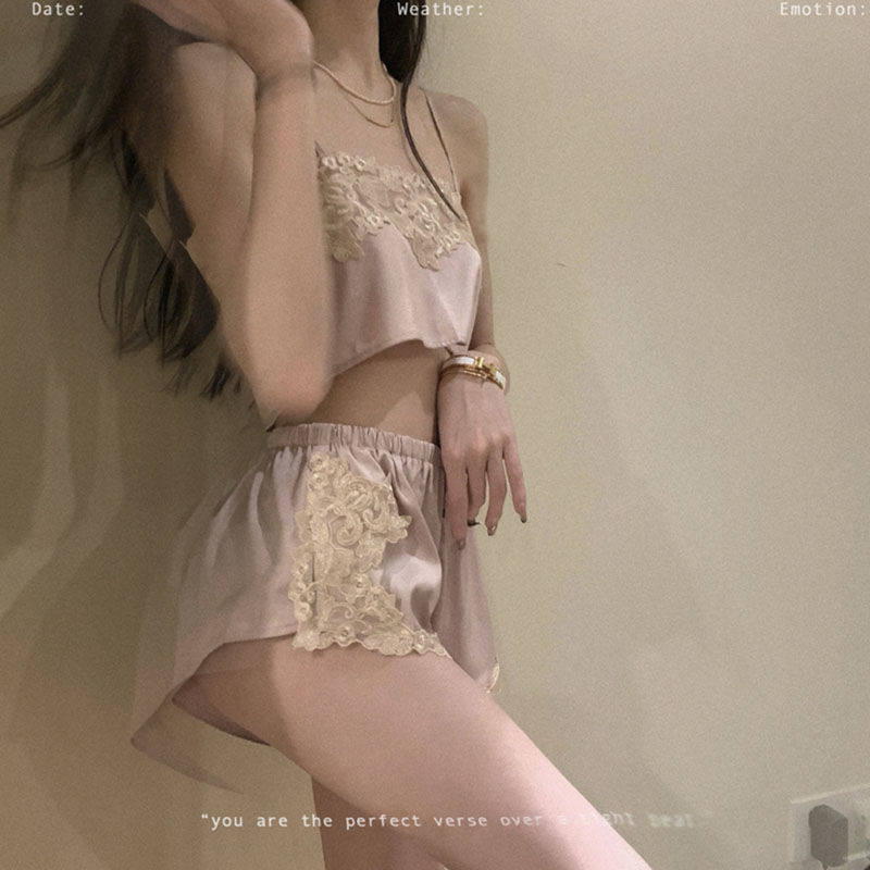 Splicing Lace Harness Sleepwear Woman Summer Thin pieces Two sets of 2021 new online Red home Suit Mood Suit Tide