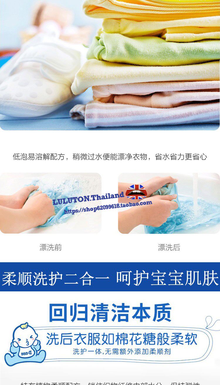 Thai D-nee infant honey laundry detergent in addition to mites and soft double care baby adult universal 3L