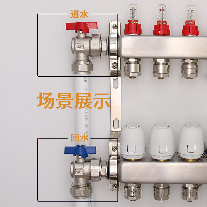 Water distributor ball valve corner type aluminium plastic 25 full copper valve 1 inch internal and external wire brass forged floor heating geothermal total sleeve valve