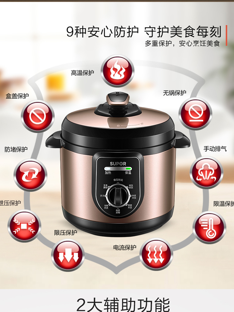 Supal voltage cooker 4L household multi - functional insulation high pressure cooker 23-4-5-6 people