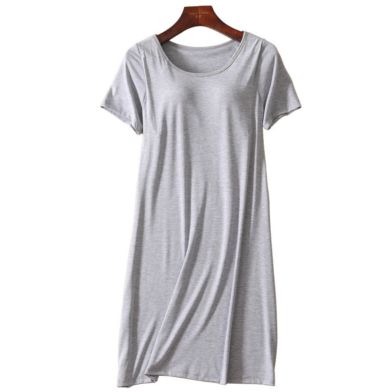 2021 summer modal all-in-one with chest pad women's casual home short-sleeved long skirt plus size nightdress dress