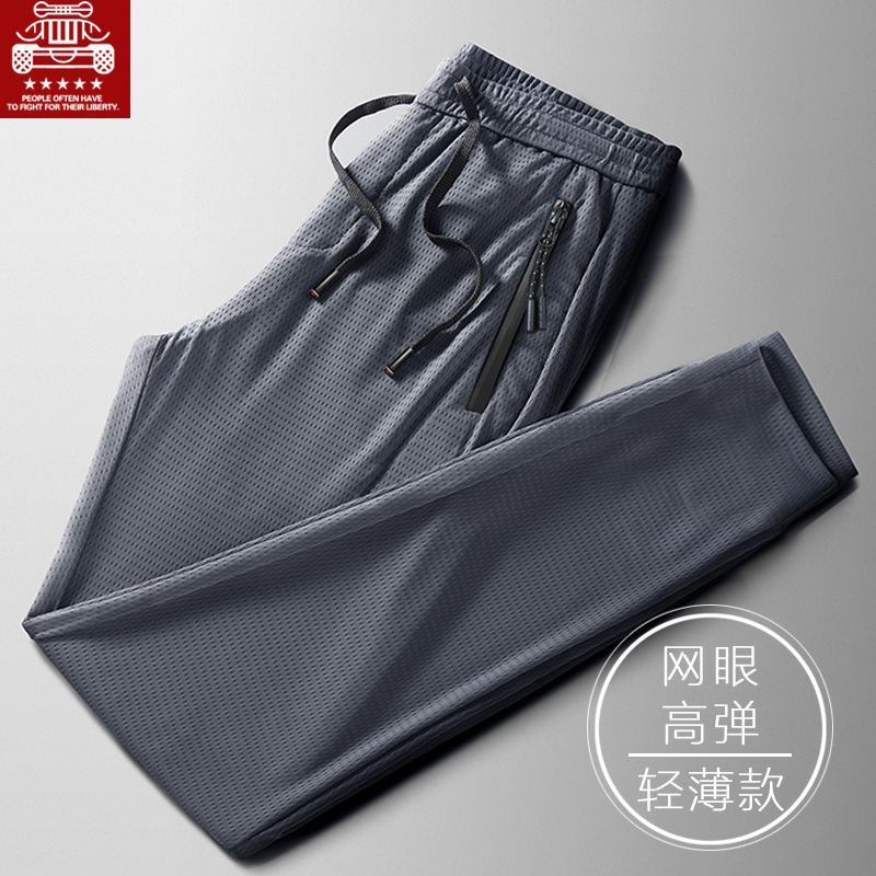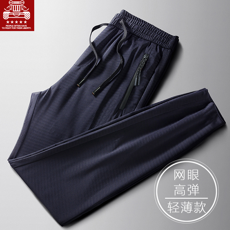 Summer thin mesh large size ice silk air conditioning pants men's high elastic quick drying loose breathable sports casual long pants