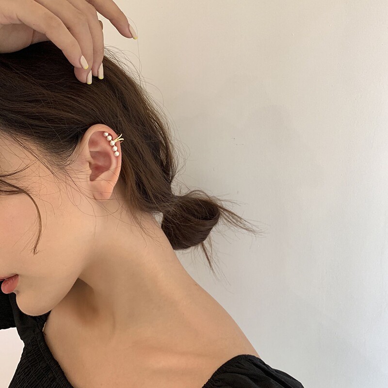 Side ear bone clip Pearl ear clip No ear pierced female high sense light luxury clipable earrings False ear needle ear hook niche ear ornaments