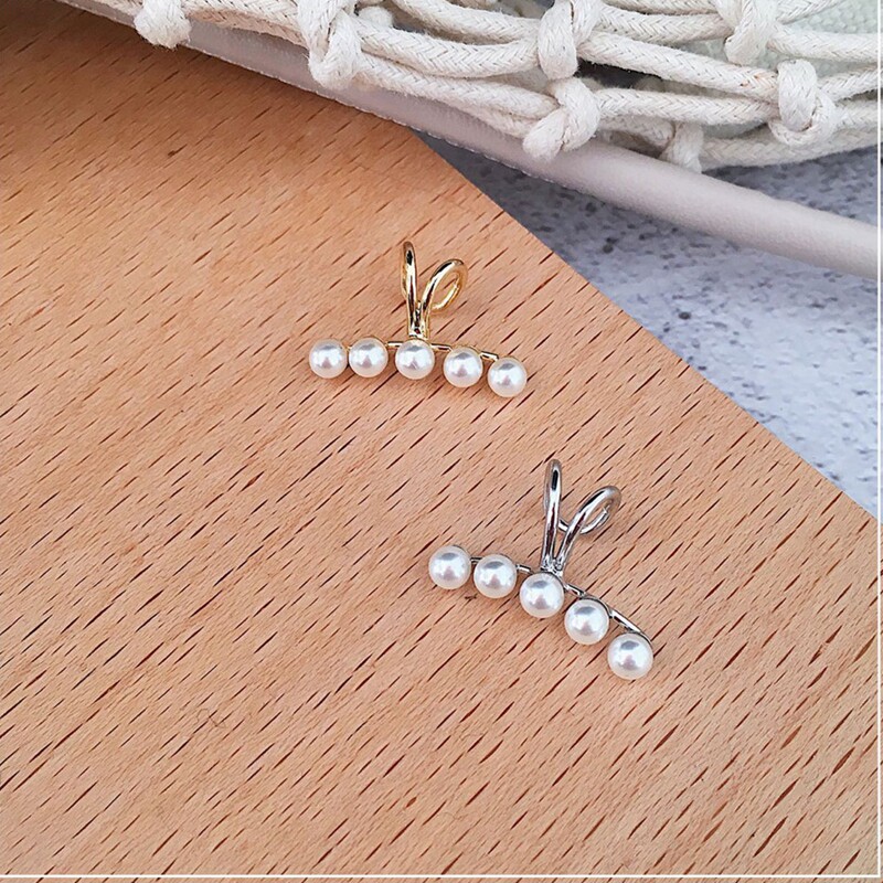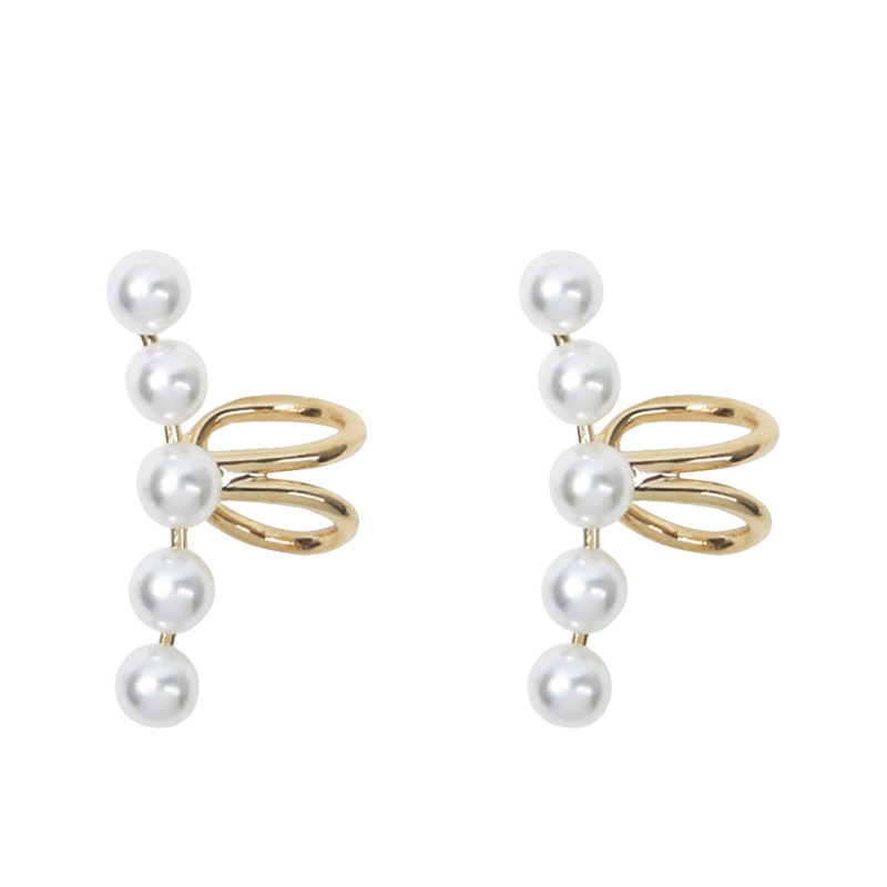White row of beads pearl ear bone clip (pair) Gold row of beads pearl ear bone clip(pair)