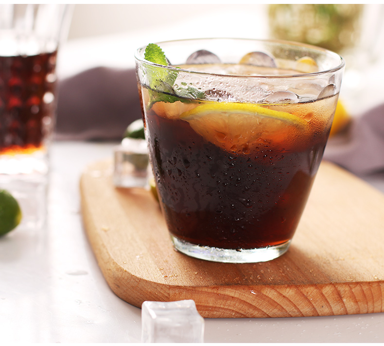 Nestled with ice and tea in the water.