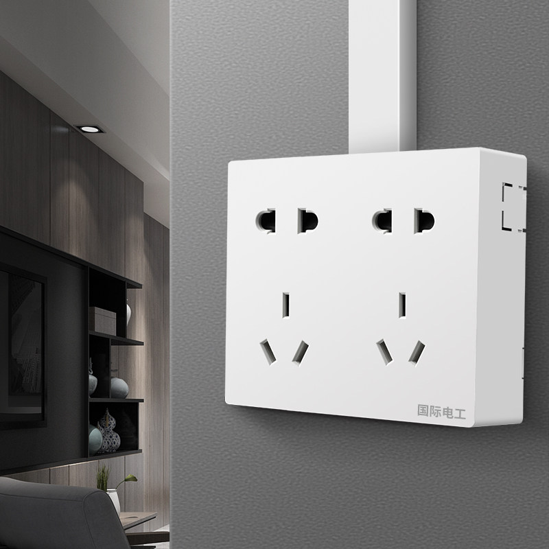 International electrician open-mounted ten-hole socket open box 10-hole ultra-thin panel two double five-hole two-three plug open wire home