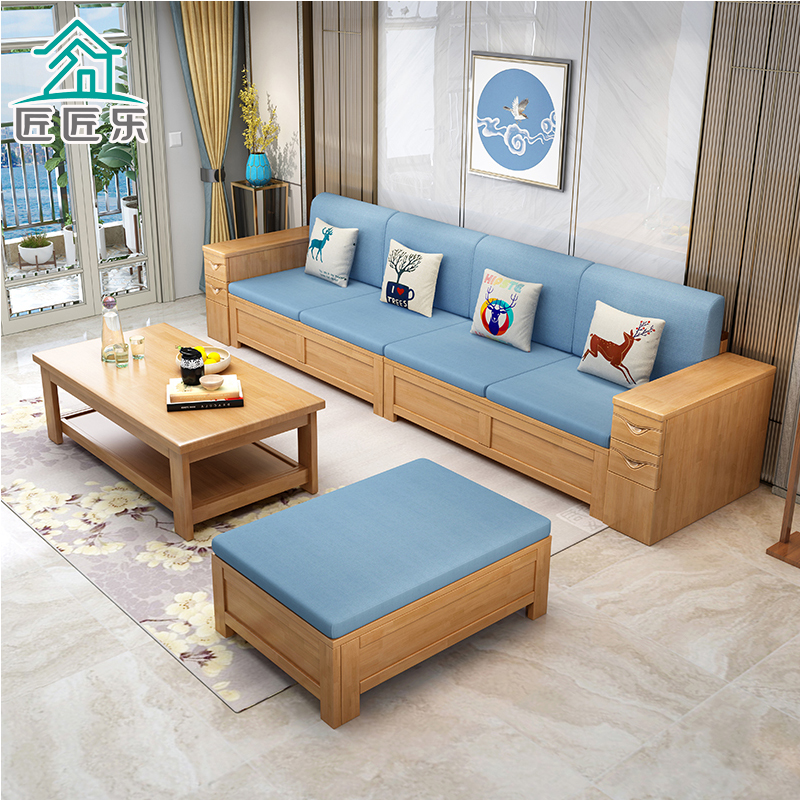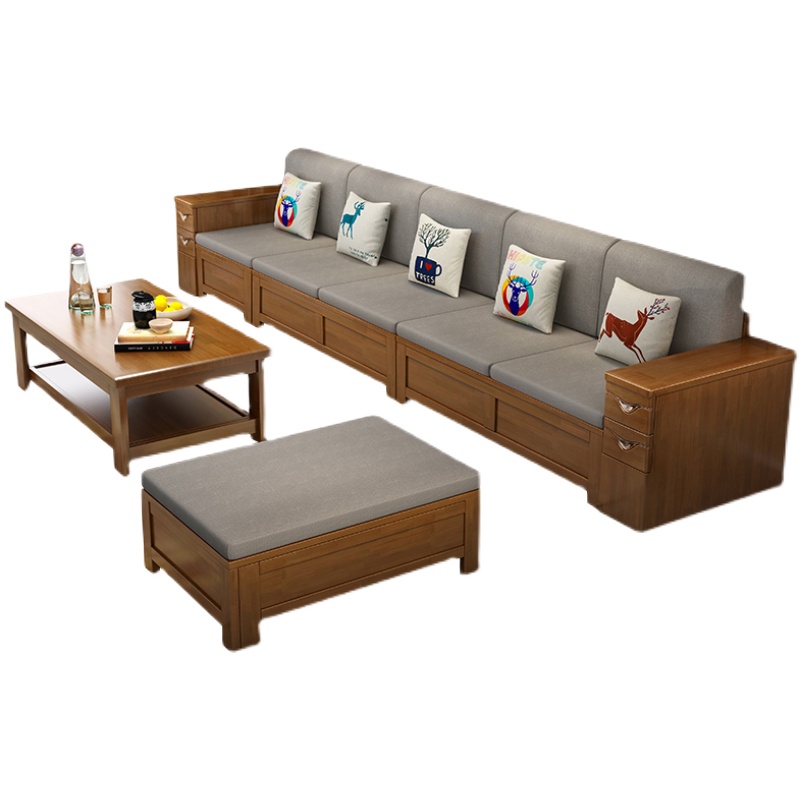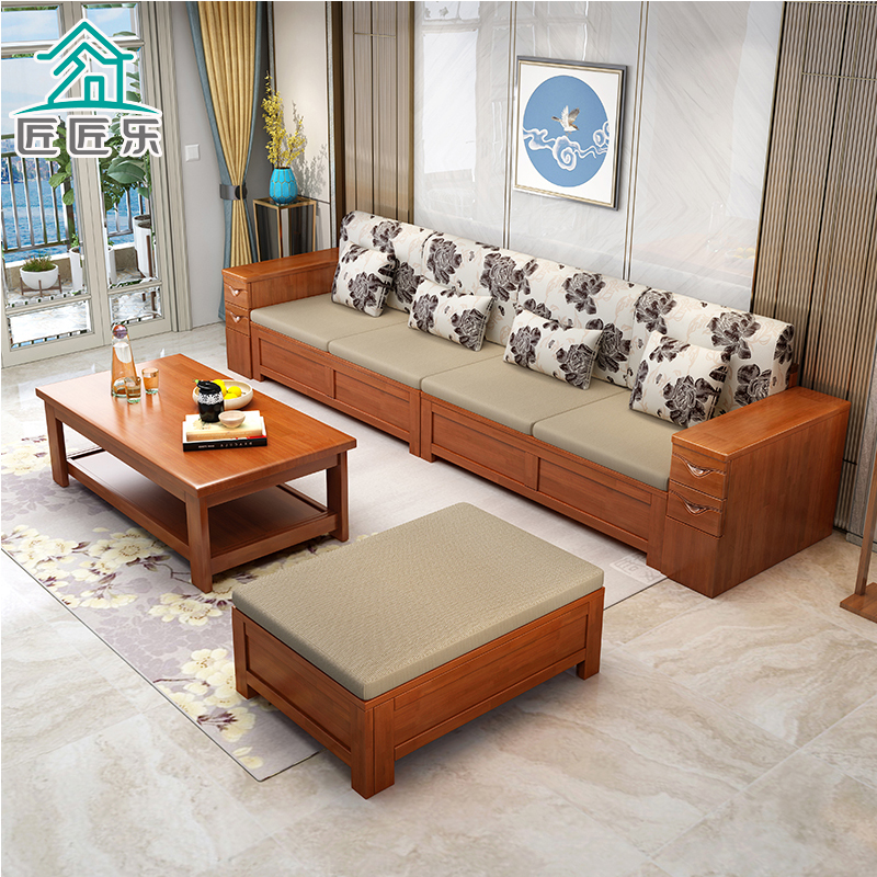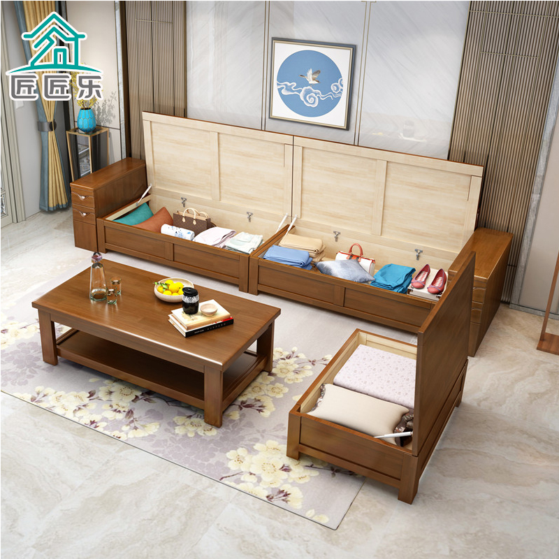 New Chinese-style living room solid wood sofa art combination simple small apartment winter and summer dual-use corner imperial concubine high box storage