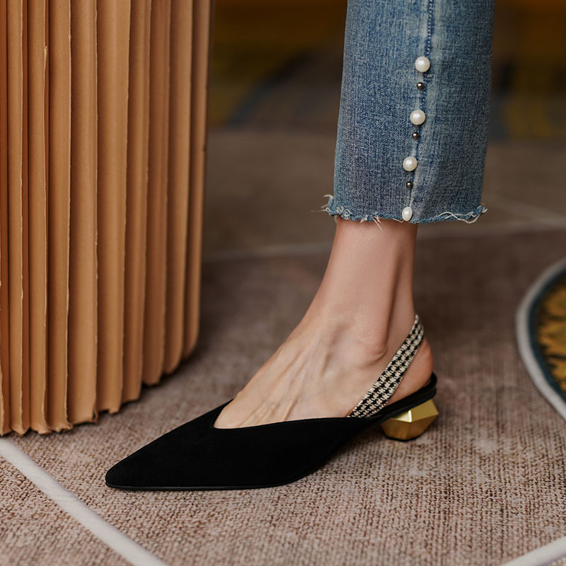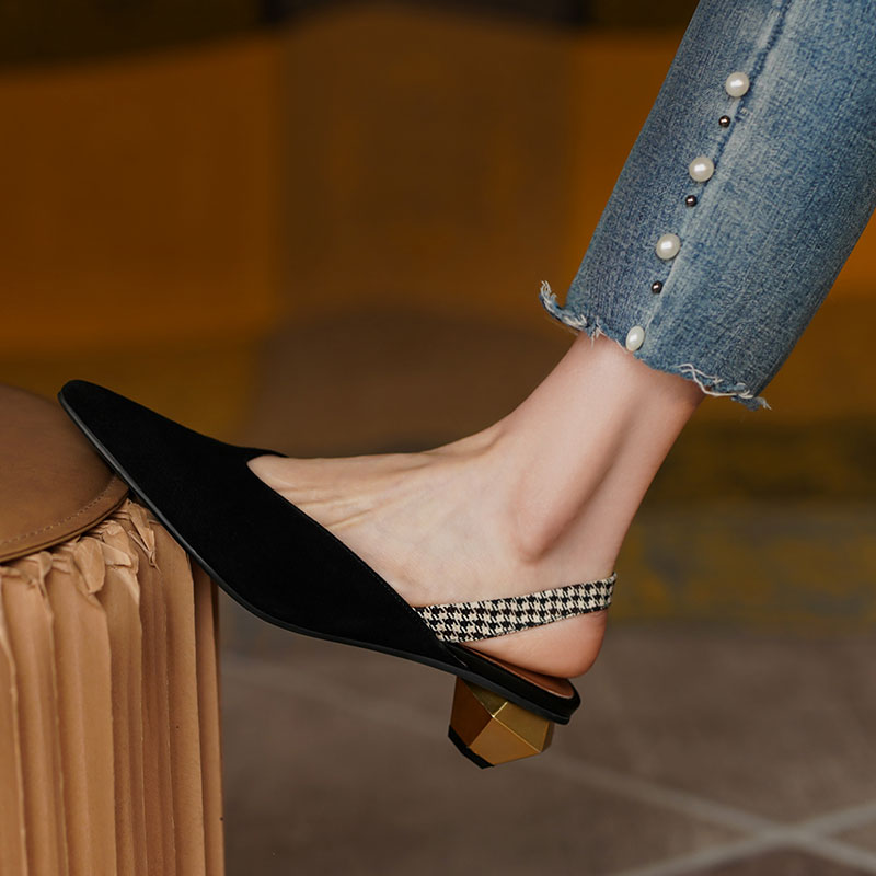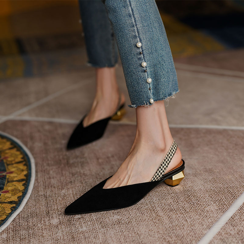 Small-uncle French style elegance ~ fashion Alien with Baotou sandal Feminine Summer Temperament pointy V mouth heel Mueller shoes