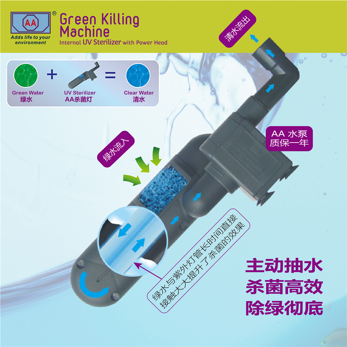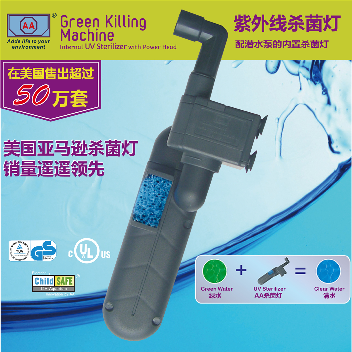 AA UV disinfection lamp germicidal lamp with green water purification GKM9W GKM24W replacement water pump AA290-DC white insert