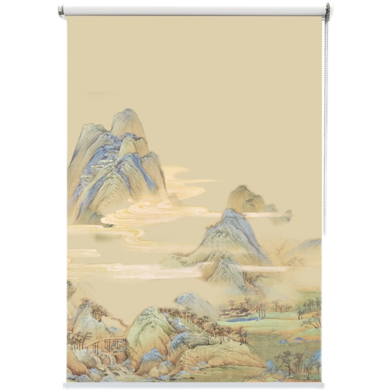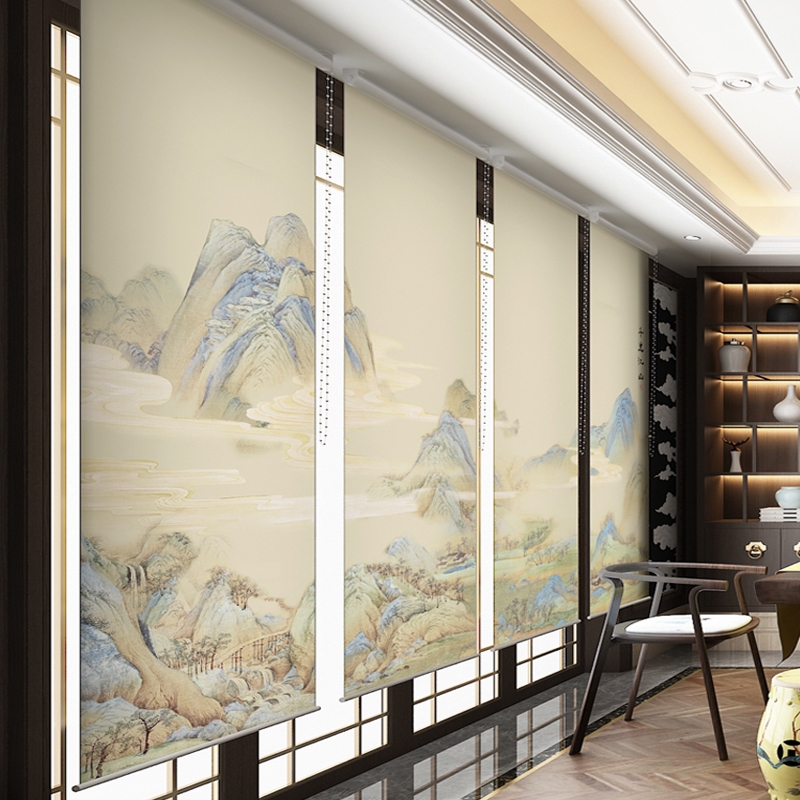 Customized Chinese-style retro Jiangshanshui artistic conception curtain factory direct sales living room porch wind partition screen hanging painting roller blind