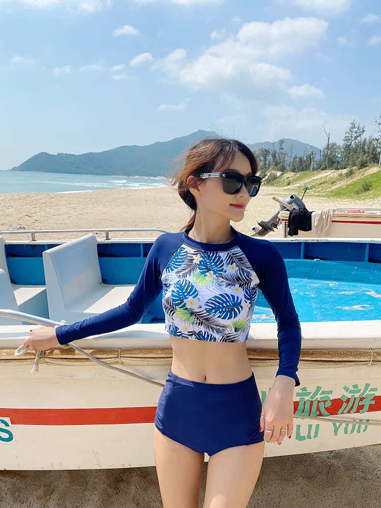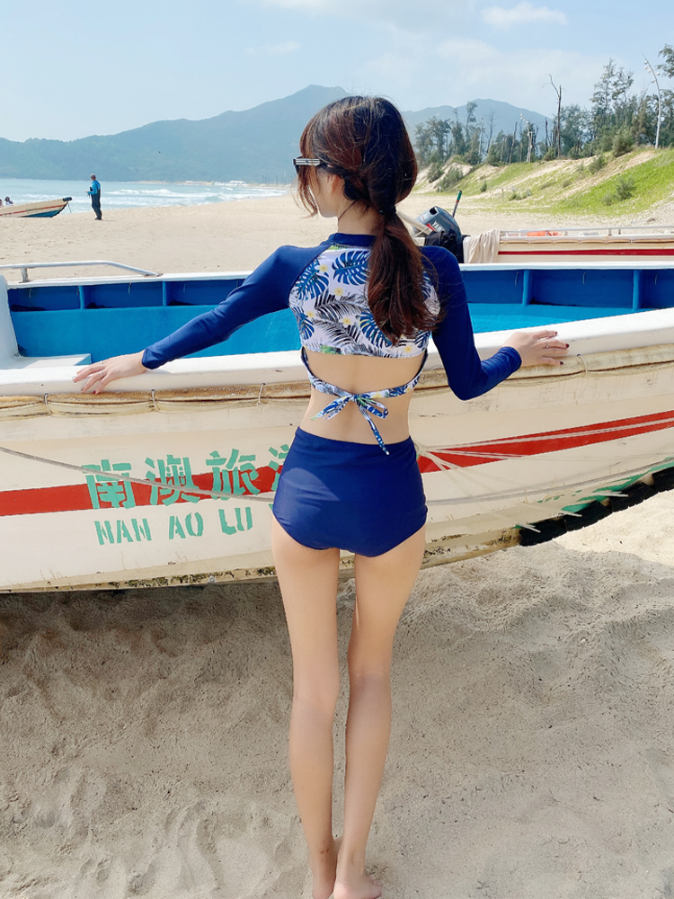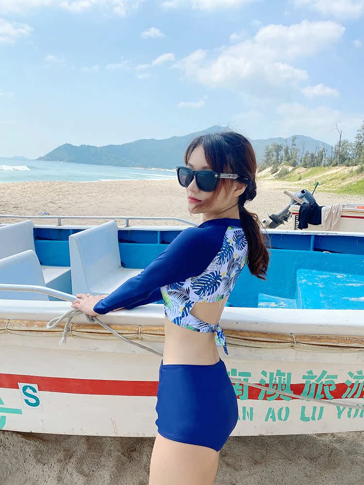 Sports Swimsuit Women Summer Diving Long Sleeve Sunscreen Sunscreen Two Style Slim Triangle Mesh Red Fairy Van Swimsuit 2021 New