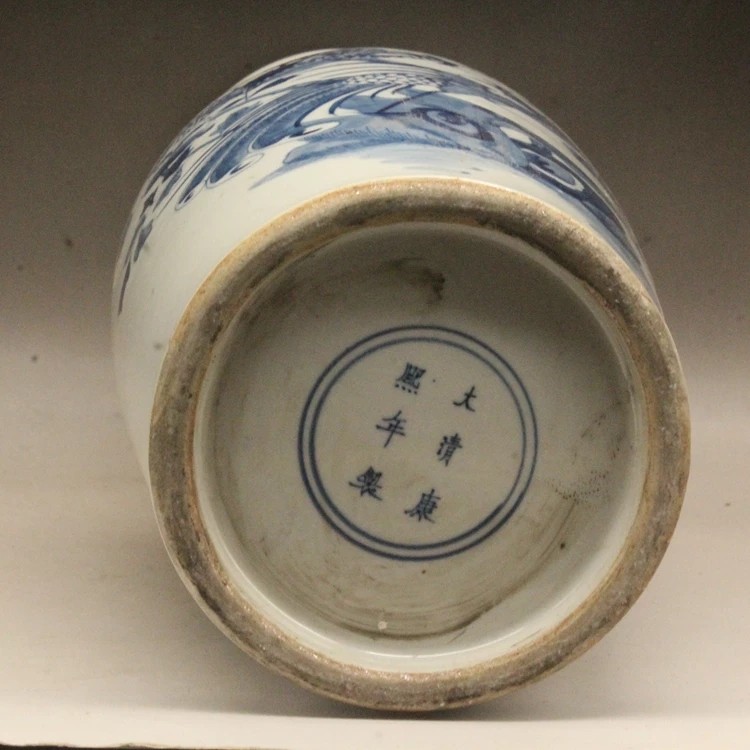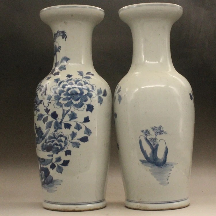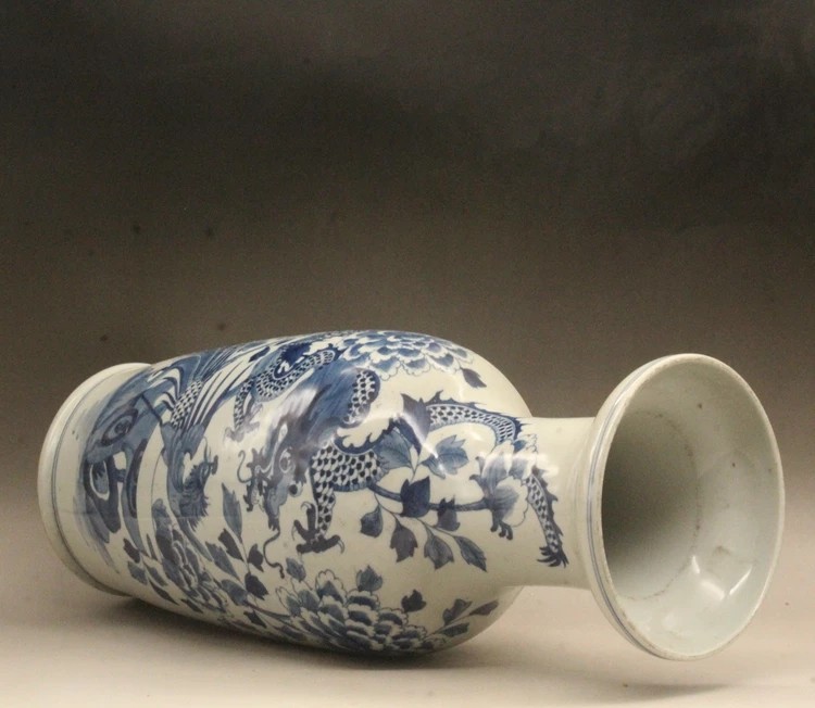 (Pair) Qing Kangxi blue and white porcelain dragon and phoenix Chengxiang bottle antique antique antique porcelain old porcelain