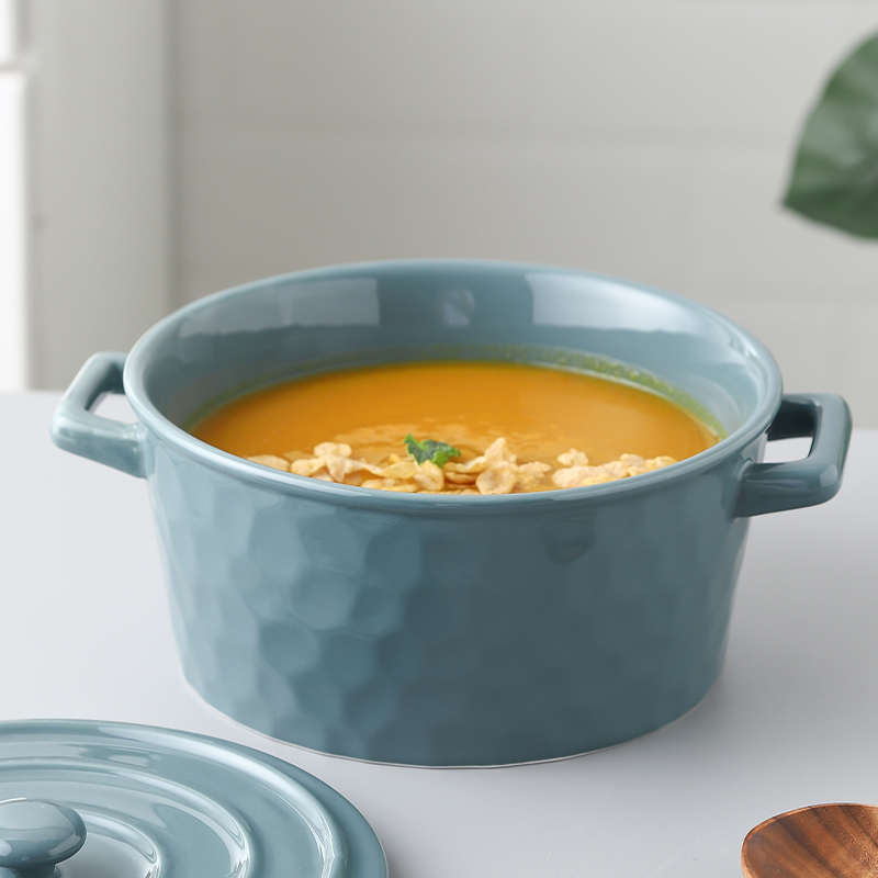 Large capacity double ear bowl ceramic soup bowl Nordic lid folding bowl insulation pure color personality student household tableware