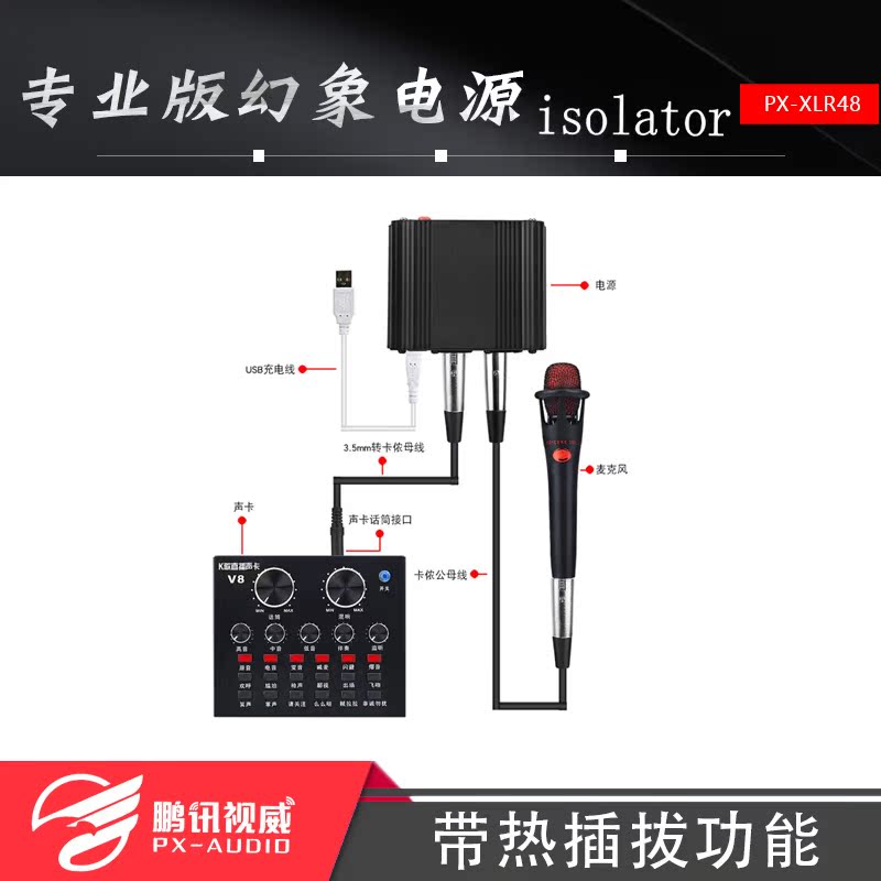 Peng Interrogation Phantom Power Isolator Capacitive Microphone USB Powered 48V Sound Card Live Noise Elimination Noise Reduction Current