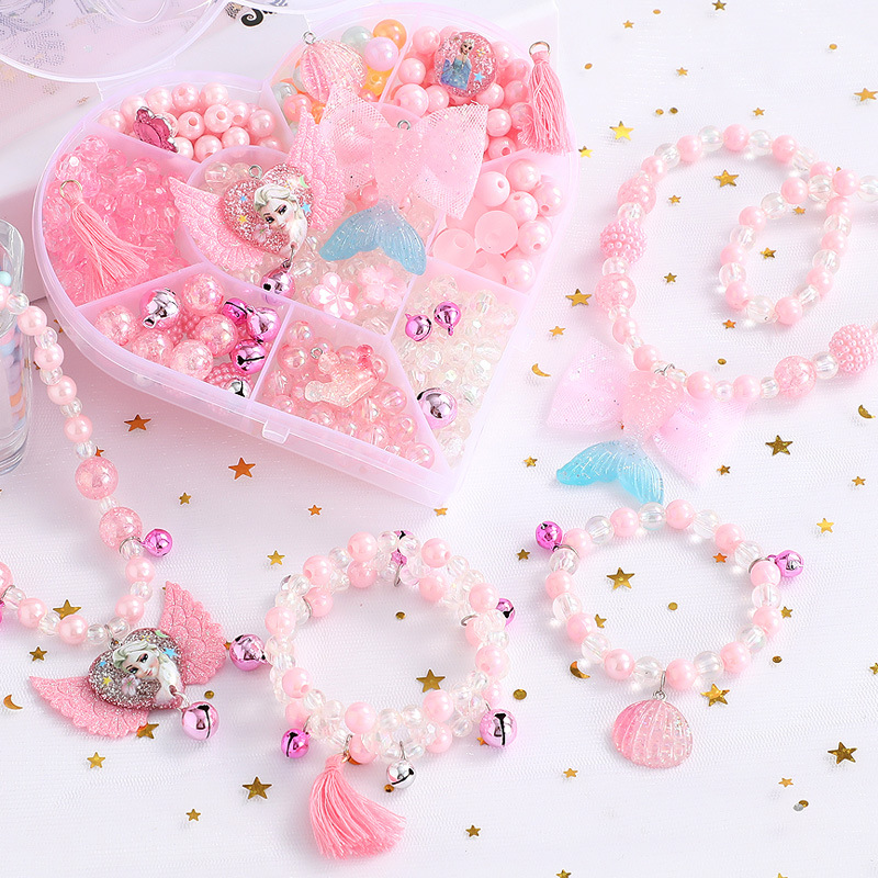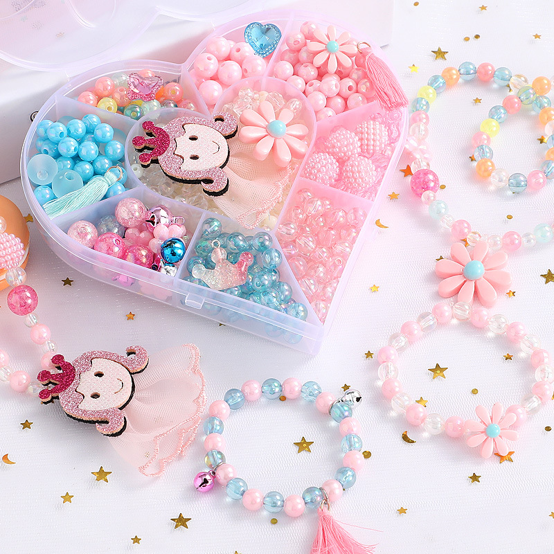Children's love box Diy made handmade string of beads l Gift cartoon Puzzle Toy Girl Wearing Beads Handmade Necklace