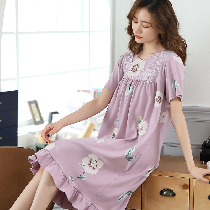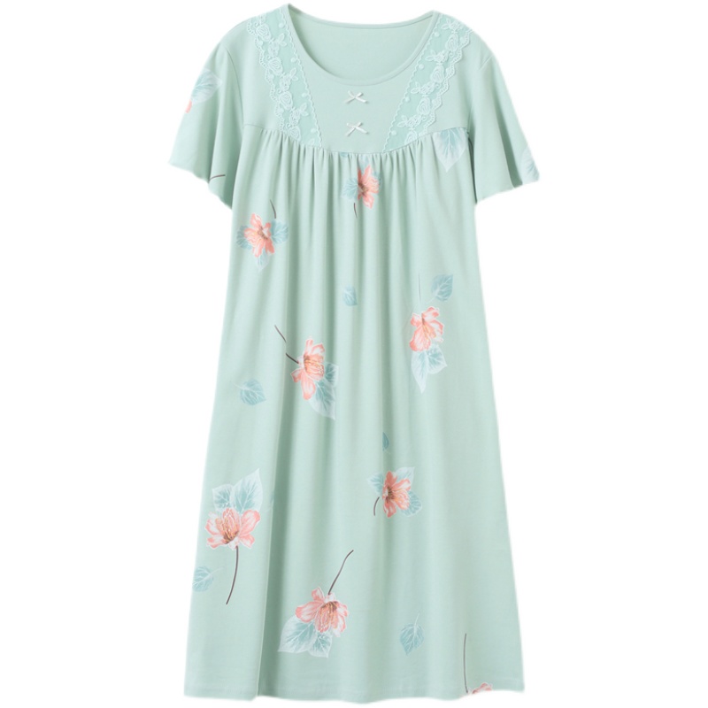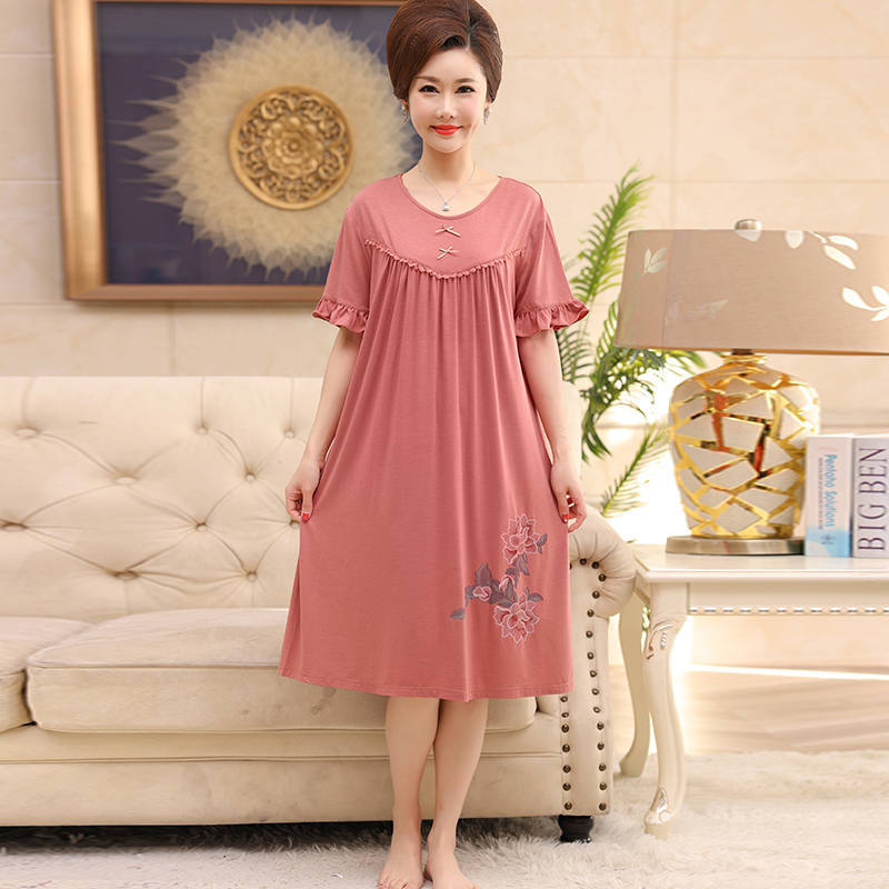 Modale Sleeping Dress Woman Summer Thin pure cotton short sleeve middle-aged Mom sleepwear summer loose increase in yard clothing