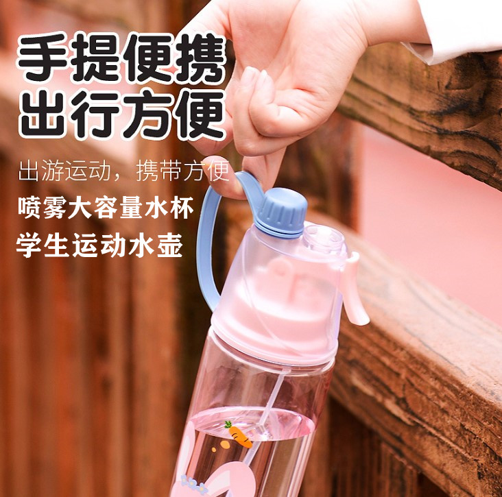 Anti-drop portable plastic water cup custom logo male and female cute student spray large-capacity sports children's gift cup