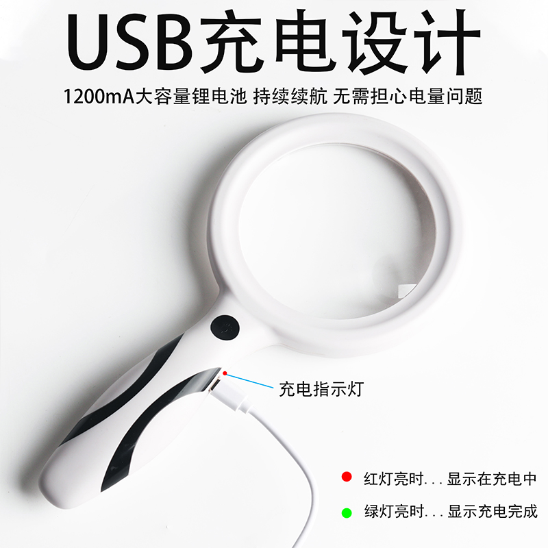 Magnifying glass for the elderly reading HD charging with LED light 300 children 60 handheld 100 portable identification special student German 1000 country 30 craft high-power elderly children repair aspherical surface