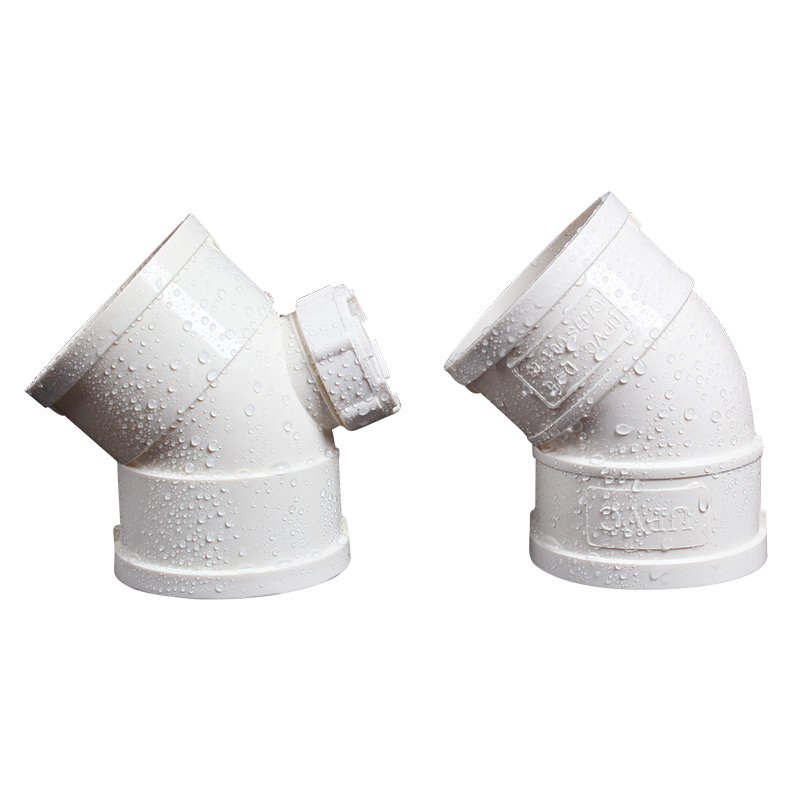 PVC45 degree elbow straight bending drainage pipe inspection mouth PVC lower water pipe fittings 50 75110160200
