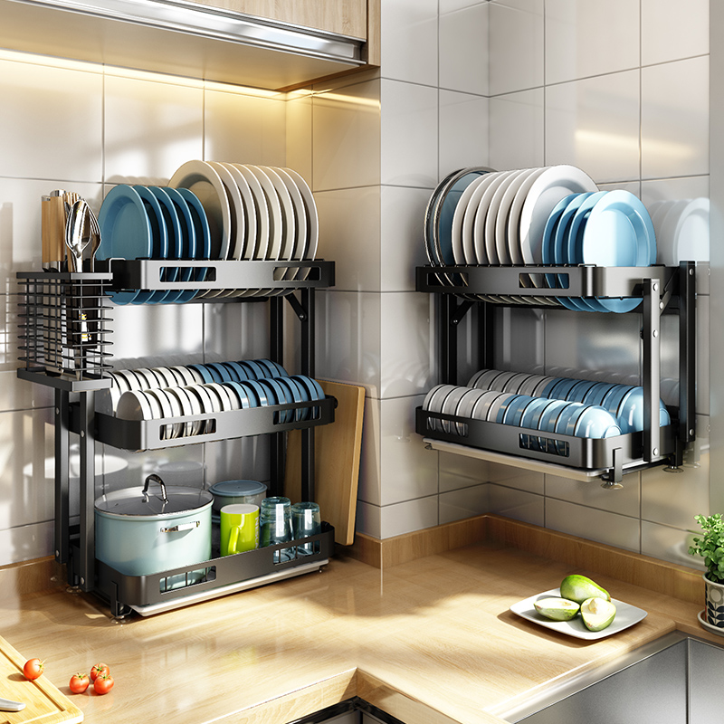 Free-to-install kitchen shelve Dish Bowl dishes Dish Holder Wall-mounted Drain rack Multi-functional Bowl Chopstick Containing box-Taobao