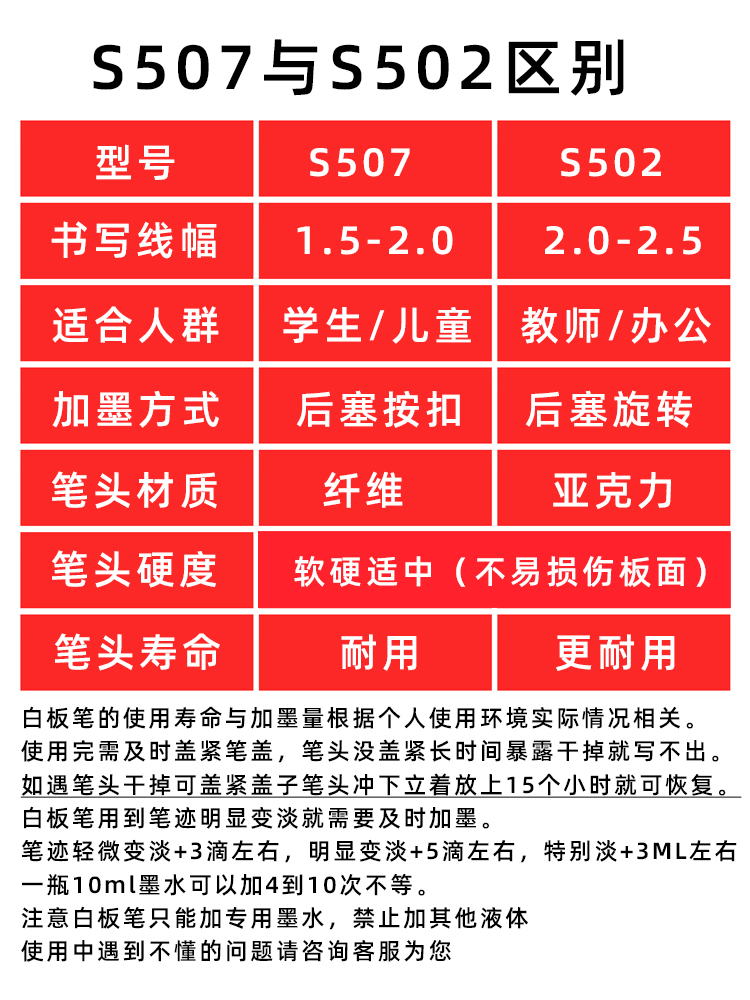 1 box of 10 price effective whiteboard pens plus ink whiteboard pens can be wiped teaching speech training big head pen s502s507