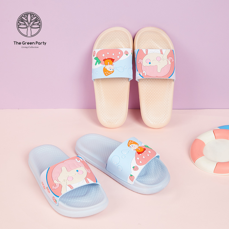 TheGreenParty couple home cartoon strawberry cute home home indoor non-slip bathroom slippers