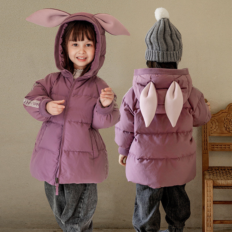 heyonwye children's down jacket female children's children's 2021 new foreign style mid-length winter children's clothing jacket
