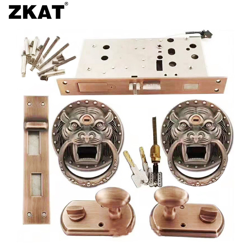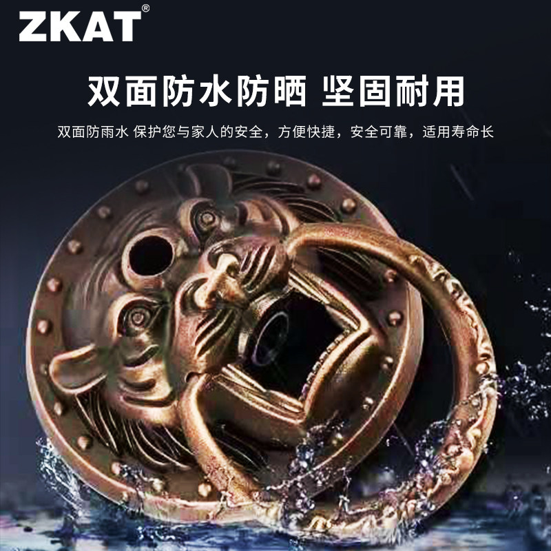 ZKAT courtyard fingerprint lock Chinese villa antique copper wooden door intelligent beast head pull ring lock rain-proof lion tiger head lock