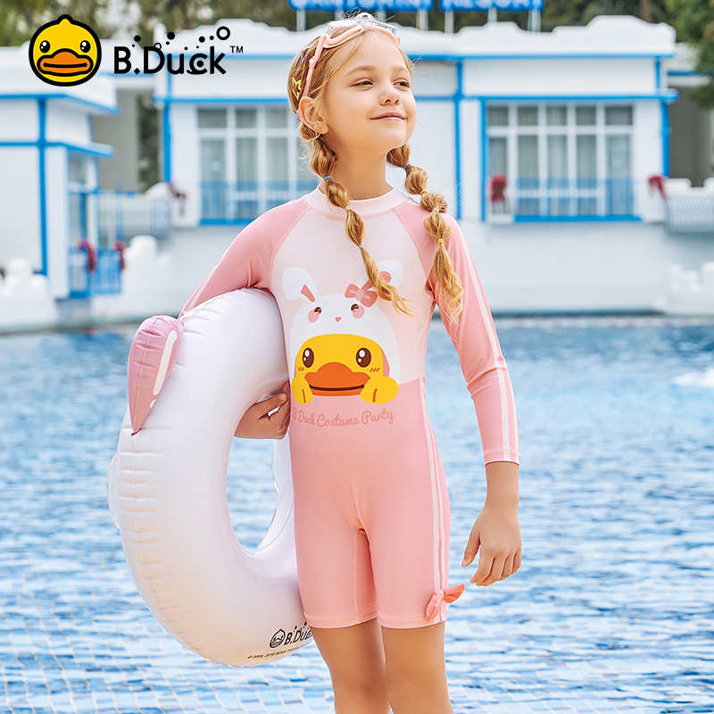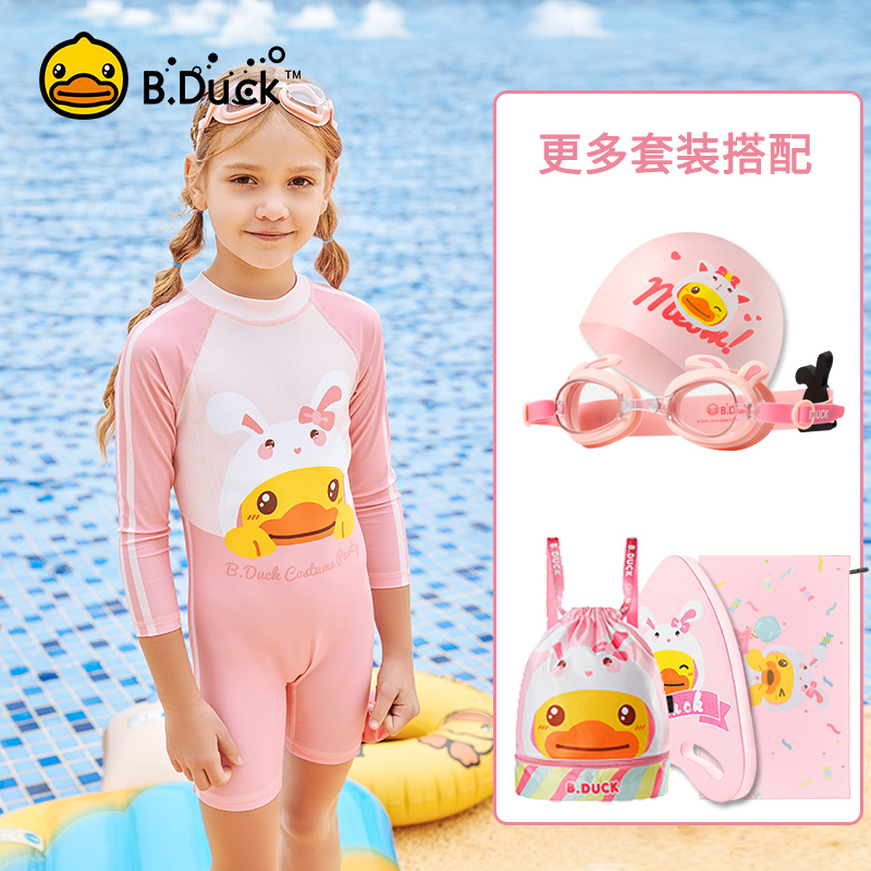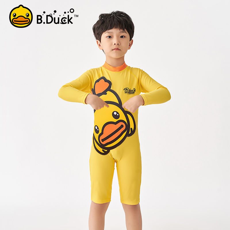 Baby baby yellow duck children's swimsuit boy 2021 summer conjoined long sleeve sunscreen medium child hot spring set