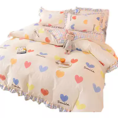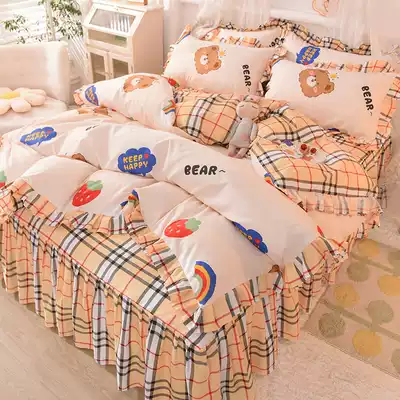 Little Red Book recommends girl heart cotton bed skirt four-piece cute princess style Korean cotton sheets quilt cover bed