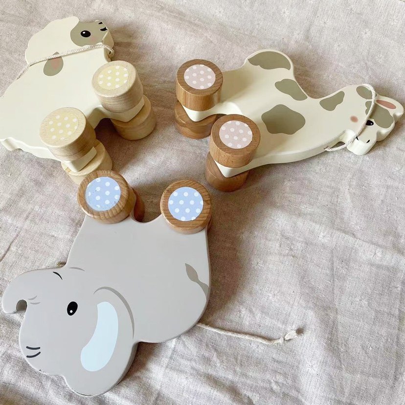 Exit Solid Wood Nordic Foreign Trade Raw Single Tail Goods Beech Wood Big Numbers Pull Wire Animal Pull Caravan Wooden Puzzle Toy