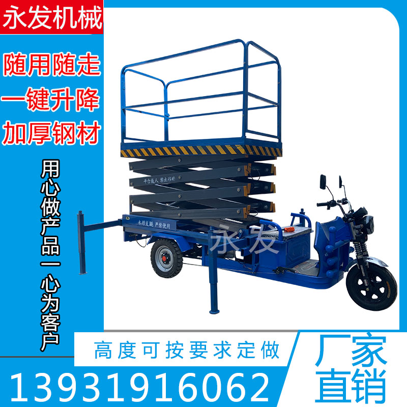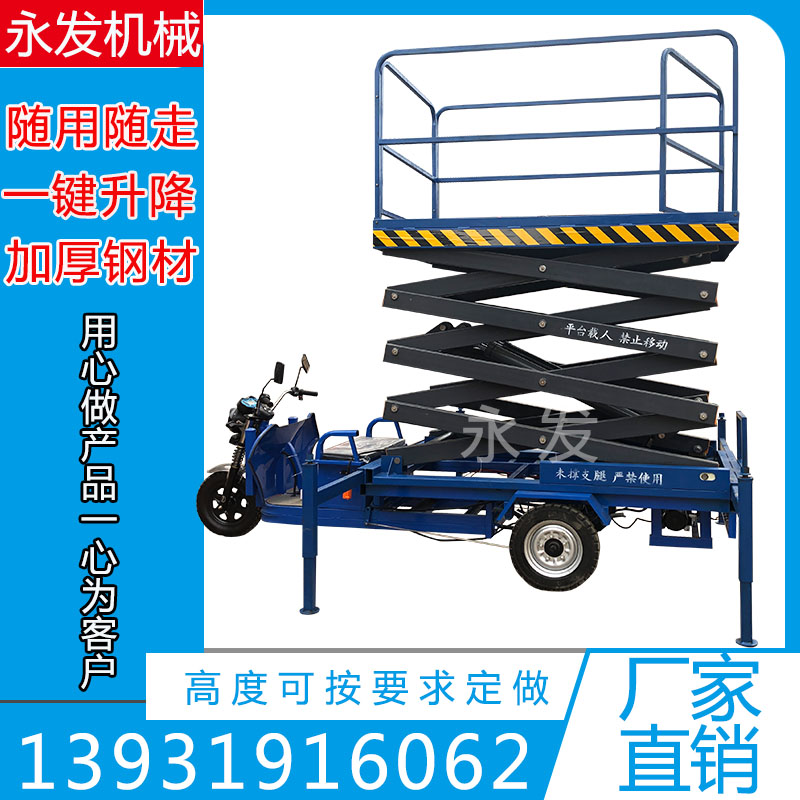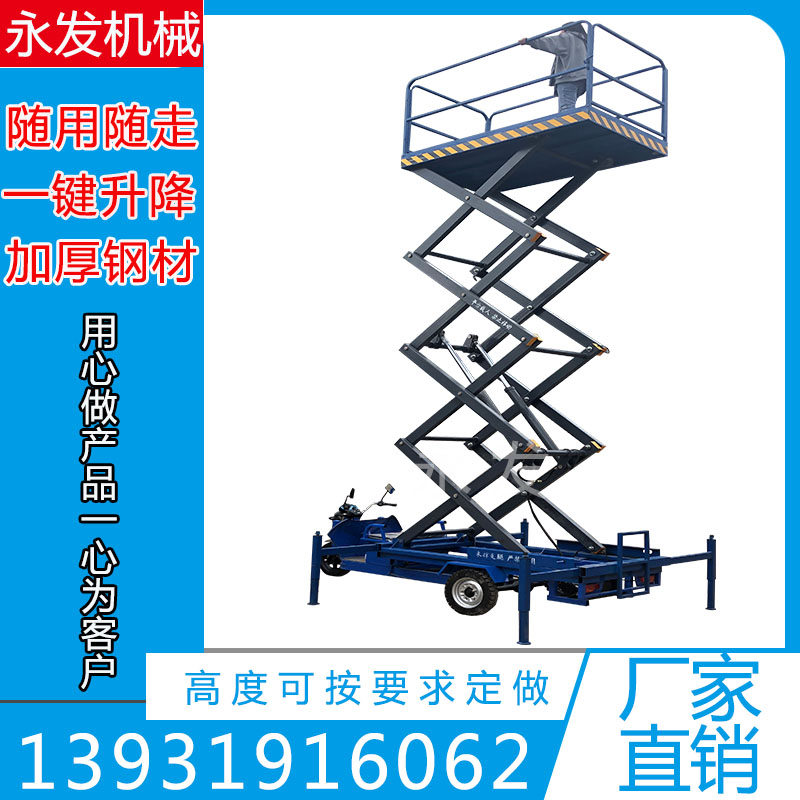 Lifting platform mobile cut pile high-machine electric tricycle traction den high car aerial work indoor and outdoor maintenance installation