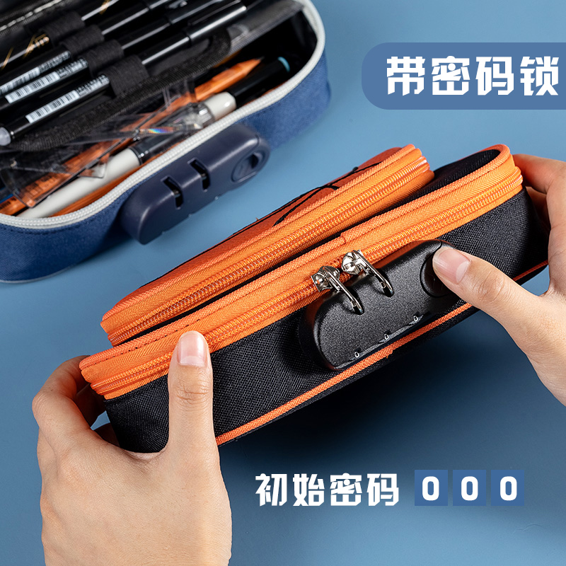 Pen Bag Large Capacity Multilayer Beginner High School Lead Pencil Case Boy Multifunction Canvas Code Lock Pencil Case High Face Value New Pop Ins Day Series Pen Case Boy Stationery Bag