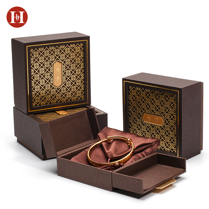 High-grade ancient gold bracelet box Hollow jewelry storage box Gift box Jade jade text play packaging box