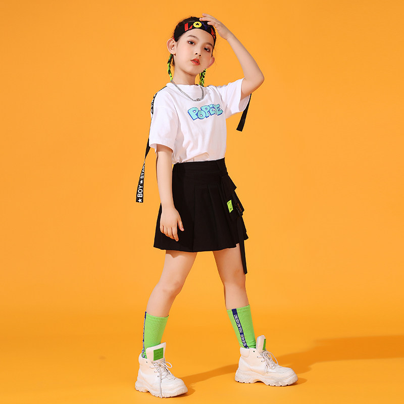 White T-shirt Black skirt Black shorts Black trousers White T-shirt Black skirt White T-shirt Black shorts White T-shirt Black trousers White T-shirt Black skirt White socks White T-shirt Black