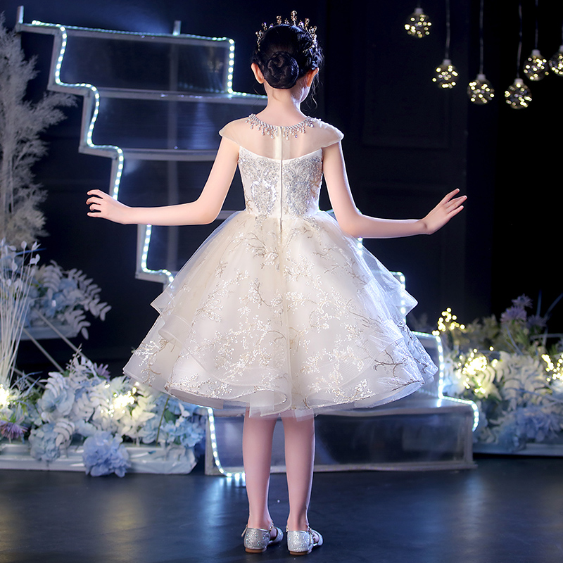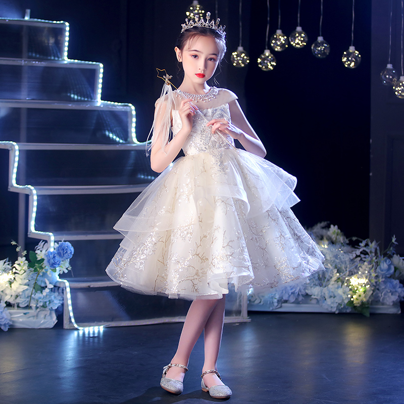 Children's dress princess dress foreign atmosphere winter girls high-end host birthday fluffy yarn catwalk piano performance costume