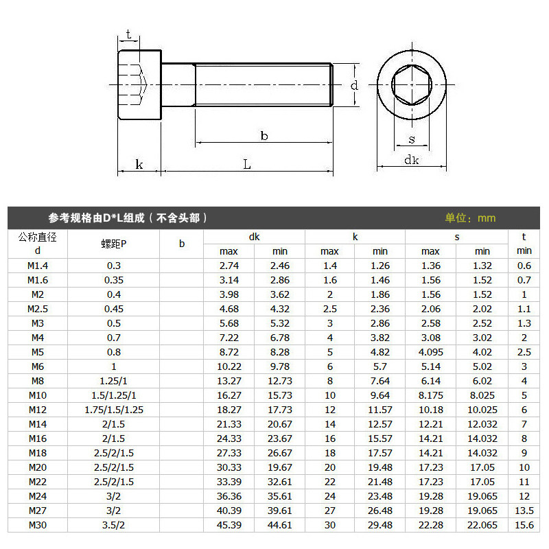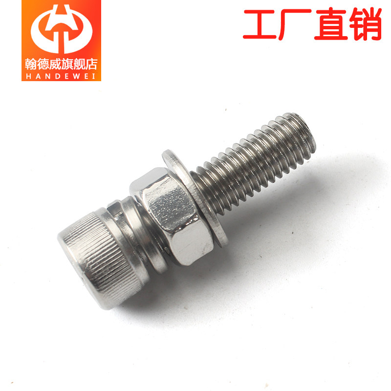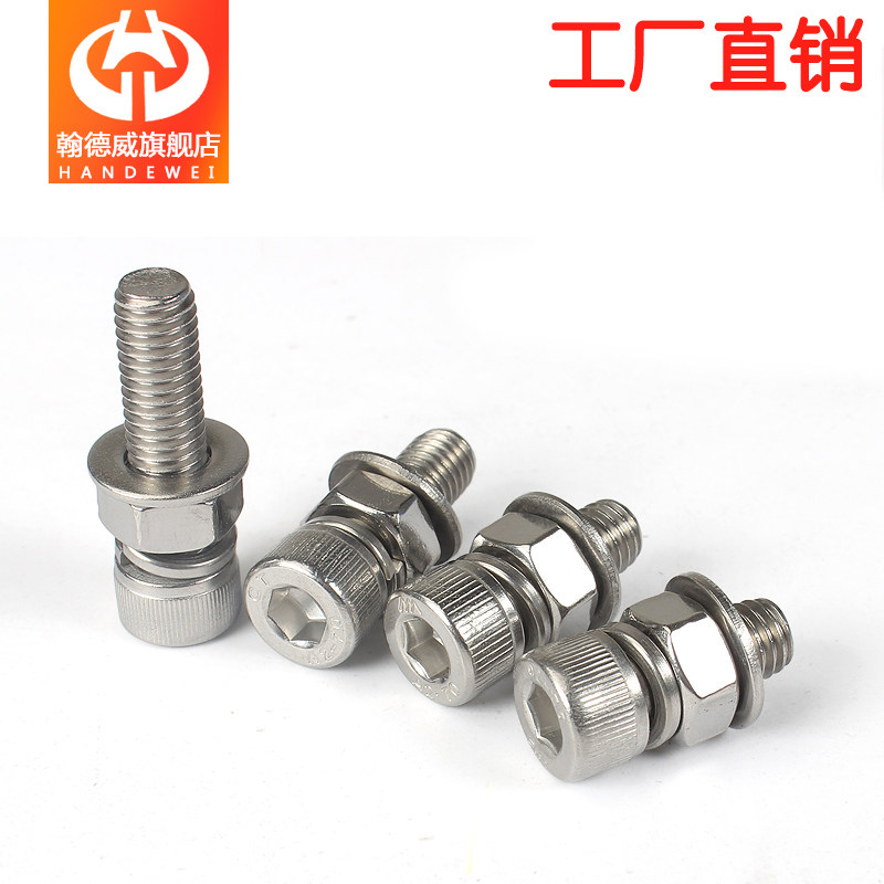 HANDWEWE 304 stainless steel cup head hexagonal screw nut suit combines large full flat bullet cushion cylindrical head M3