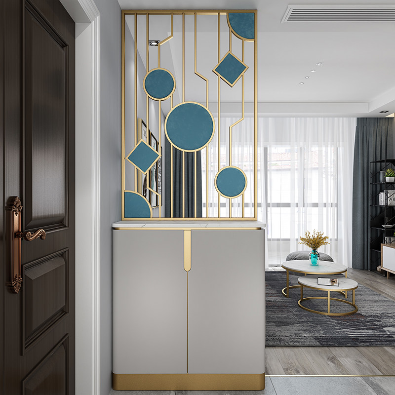 New Chinese light extravagant iron art living room screen Xuanguan stainless steel hollowed-out modern minimalist cloth art soft bag decorative partition