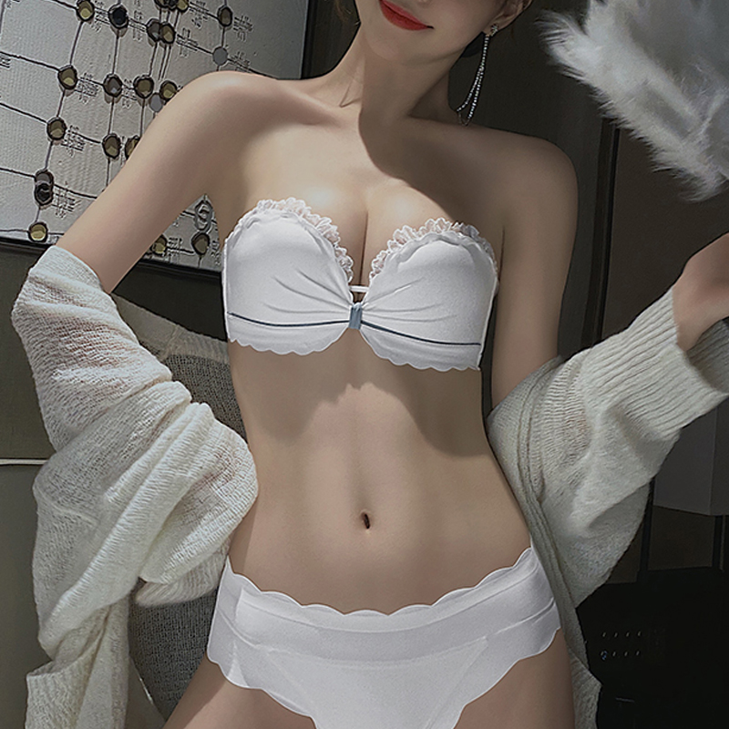 Tube top bra strapless small chest gathered seamless underwear women's underwear summer white seamless thin girls