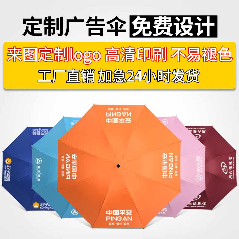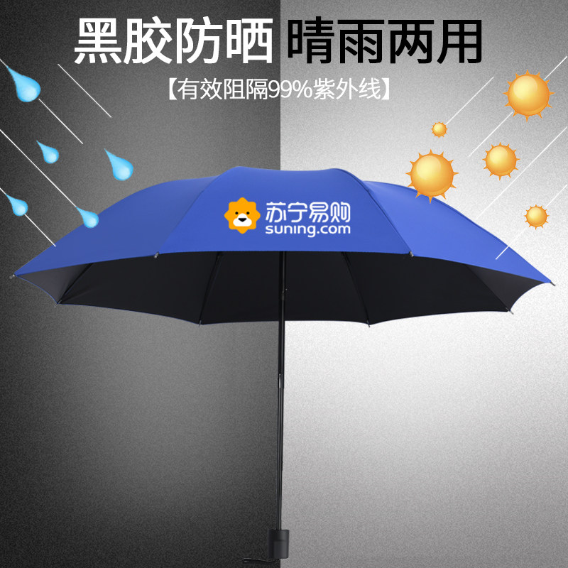 Umbrella custom logo folding sunscreen black plastic umbrella anti-UV Chinese safe pattern lettering advertising umbrella custom