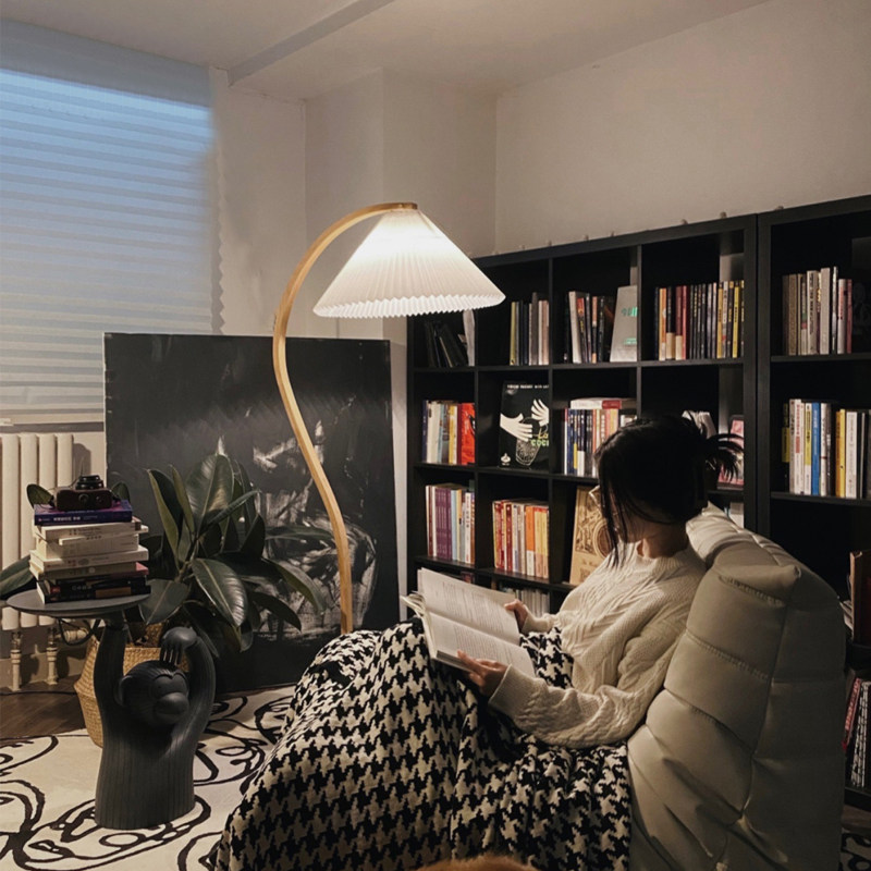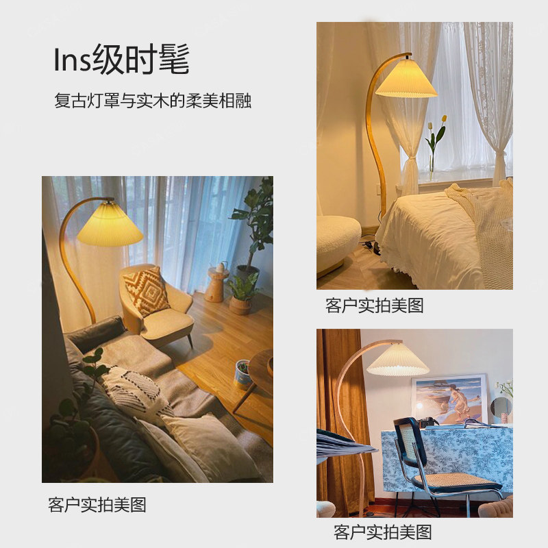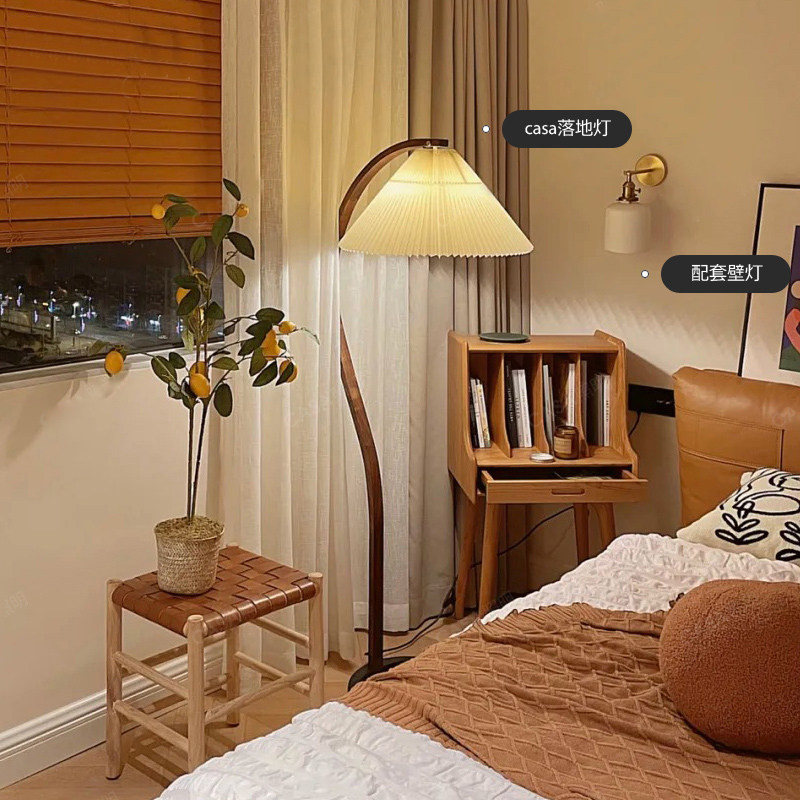Solid wood living room floor lamp pleated retro wabby silent wind Nordic medieval designer bedroom study ins homestay lamp