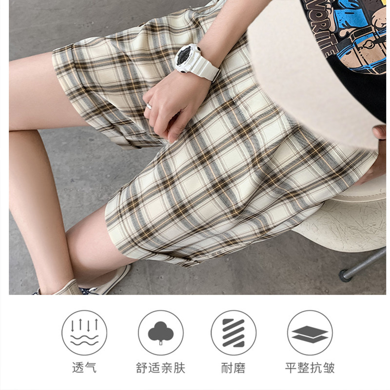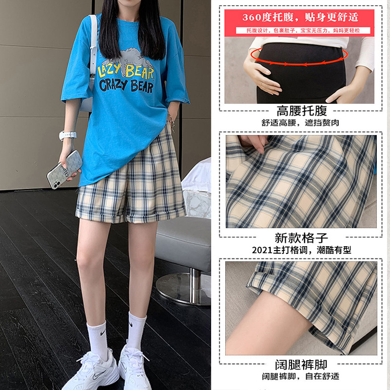 Pregnant women's plaid shorts women's summer thin outer wear 2021 chiffon large size 5 points casual wide-leg suit five-point pants