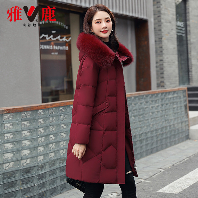 Yalu middle-aged down jacket female 2021 autumn winter hooded long version of big hair collar mother 40 years old warm coat