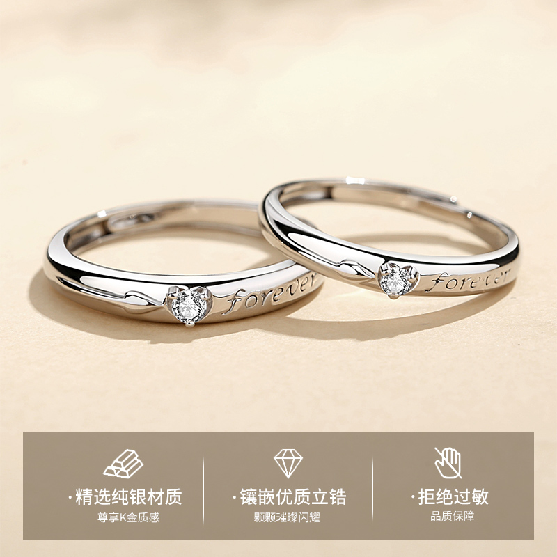 Couple's ring female wedding simulation drills a couple of ring couple's 999 pure silver wedding Valentine's Day gift to girlfriend-Taobao