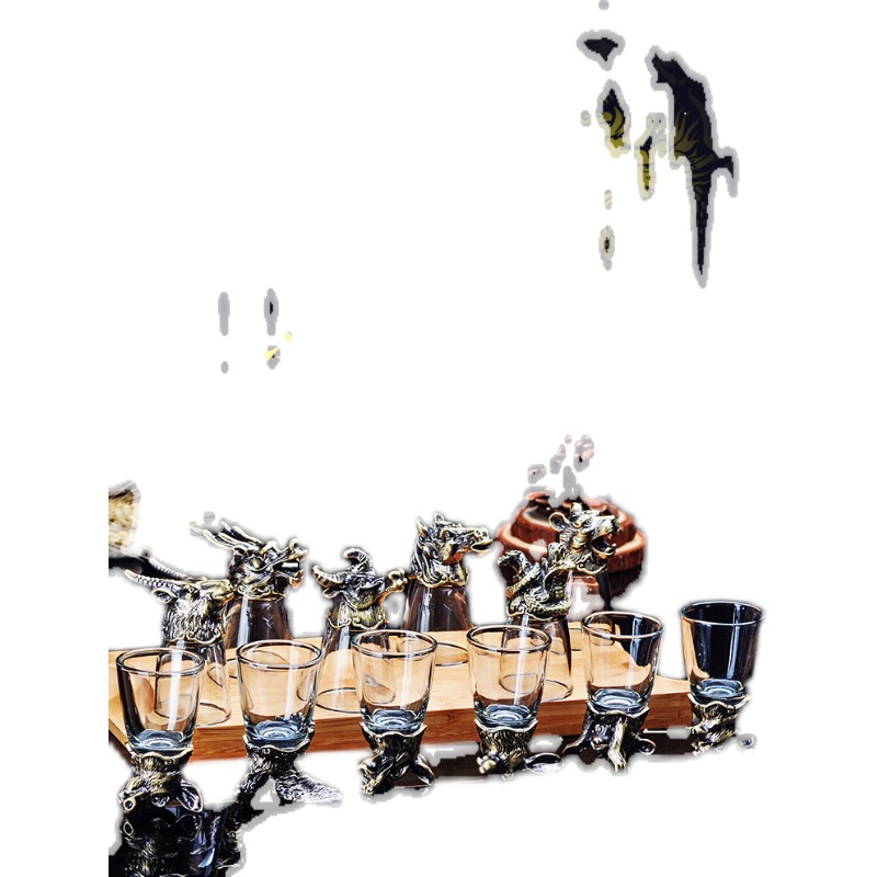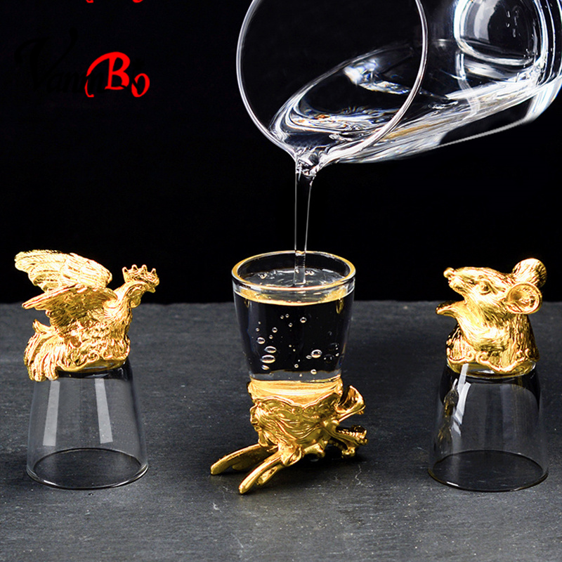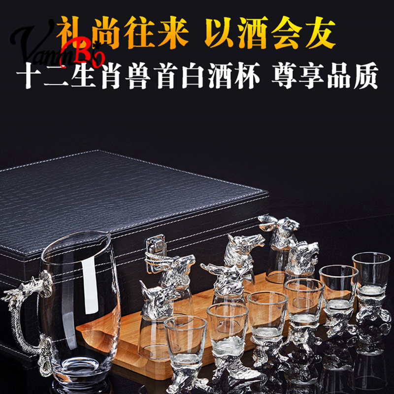 Antique zodiac wine set small white wine glass set home high-end creative glass wine dispenser Chinese style antique