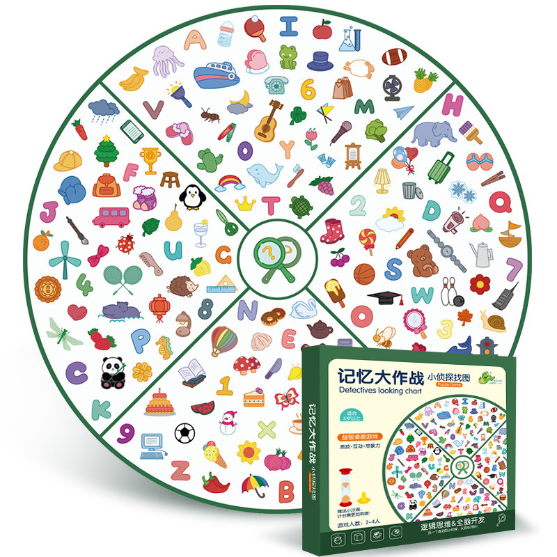 Memory training (gift box) (1 game pad, 60 clue cards, 60 detective rings, 12 detective marks, 1 hourglass), memory training, logical thinking training (frog seesaw), memory training, feeling