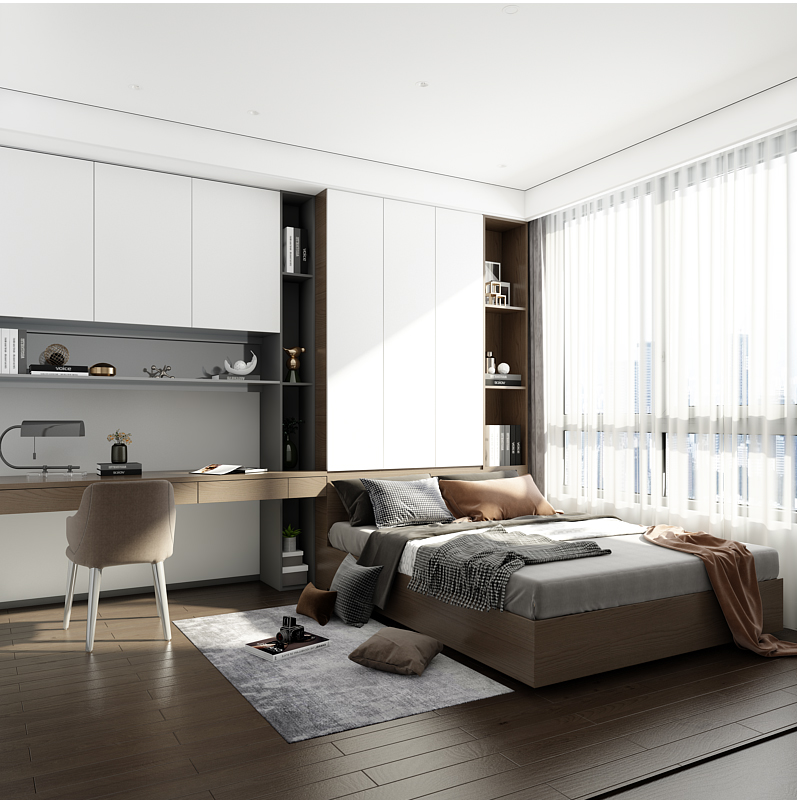 Shanghai Full House Custom Overall Bedroom Tatami Bed and Wardrobe Integrated Open Cloakroom Factory Direct Sales