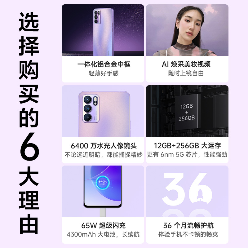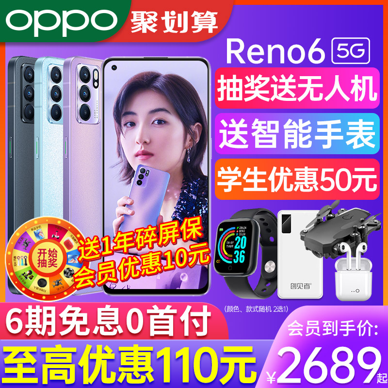 12-period interest-free (minus 160)OPPO Reno6 opporeno6 mobile phone smartphone limited edition 5g new reno6pro ten-star Dai Zi